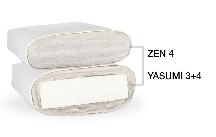 La combinazione delicata. Il Yasumi 3+4 è una base futon portante e allo stesso tempo avvolgente, ideale anche direttamente sul pavimento. Lo Zen 4 aumenta il fattore coccola come topper in pura fibra naturale, particolarmente per chi dorme di lato. La nostra combinazione Twin-Futon molto delicata a prezzo vantaggioso.