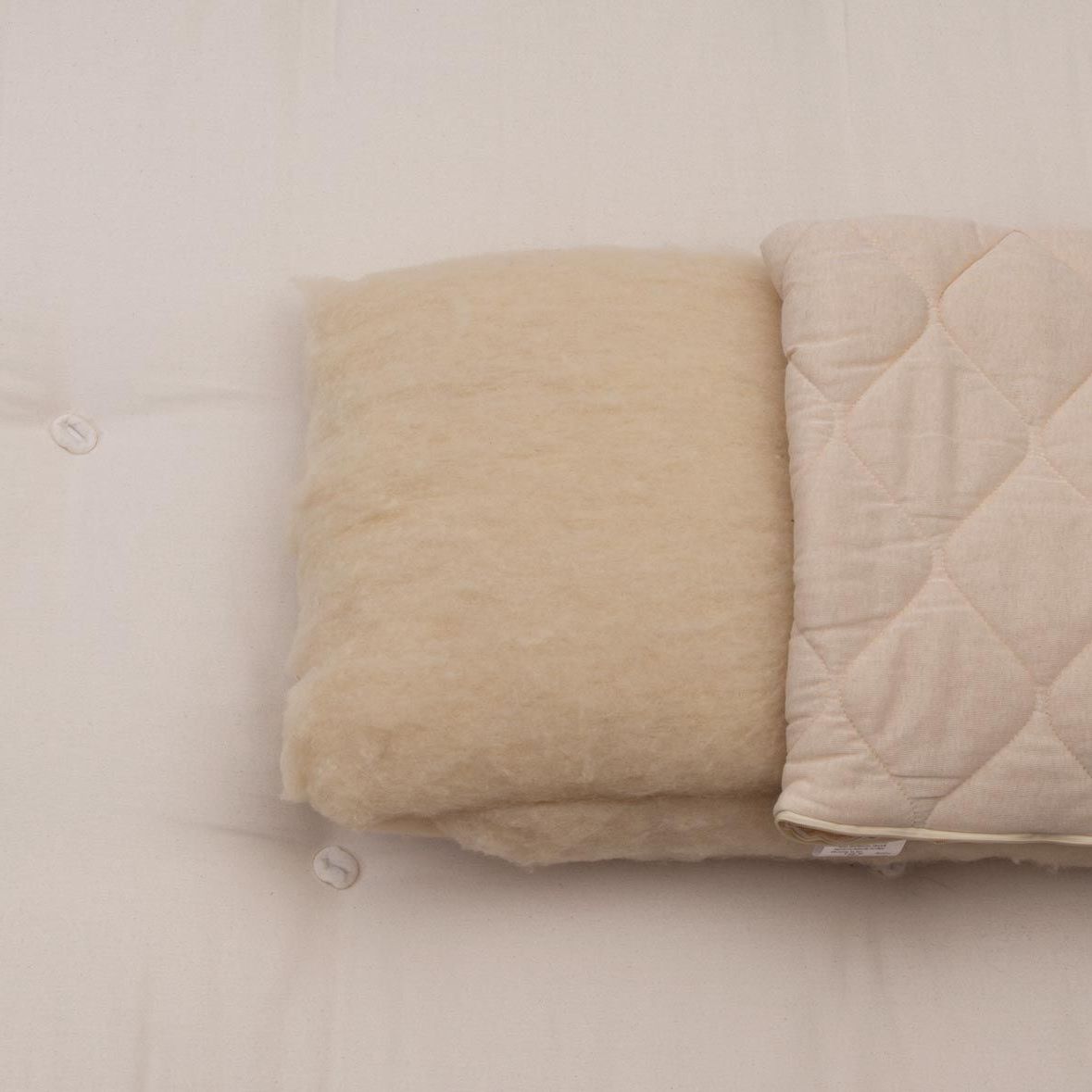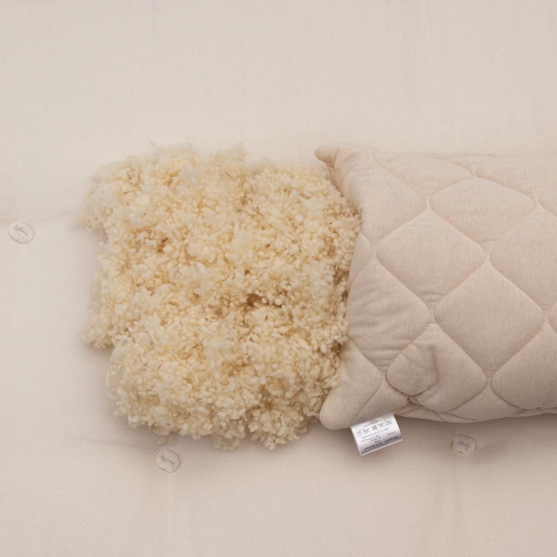 Våra Merinokuddar finns i två versioner, med flingfyllning (många små ullkulor) eller fleecefyllning (finkardade lager).